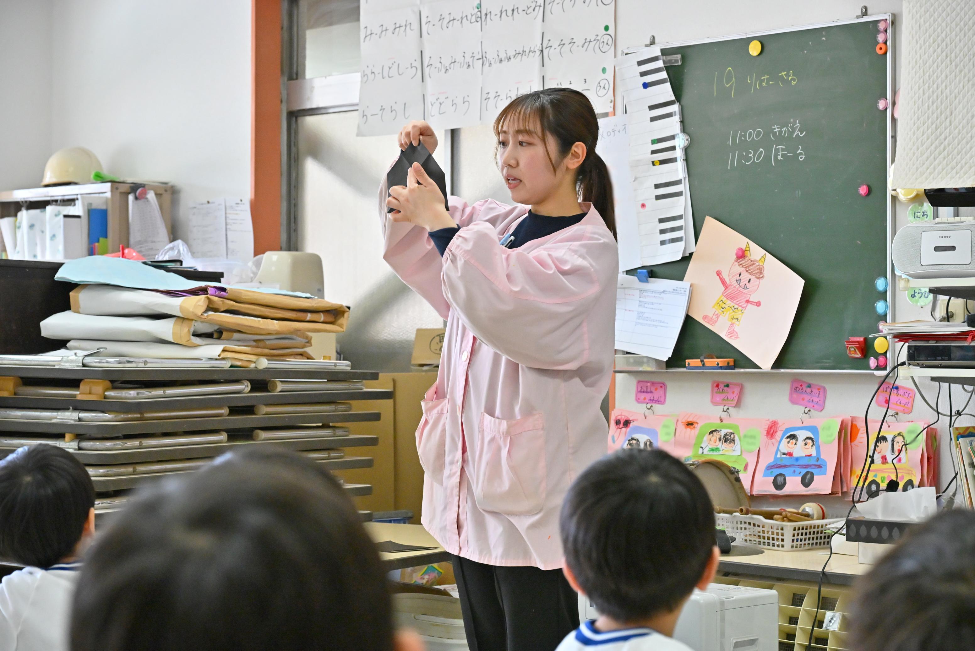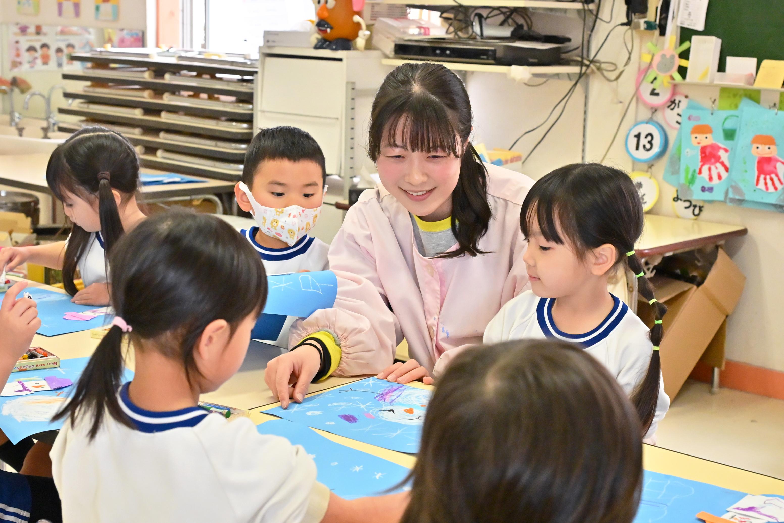 A:子どもの成長を感じられたときや、子ども達が笑顔で楽しく楽しそうにしている姿を見ると嬉しく思います。子どもの行動や発言から新たな視点を得られることも多くあり、一緒に成長できることに幼稚園教諭という仕事の良さややりがいを感じています。